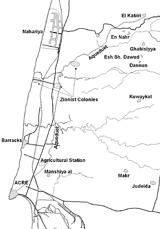 Acre was to be the next Zionist target. The Zionists besieged the city from the land side, and started showering the population with a hail of mortar bombs day and night. Famous for its historical walls, Acre could stand the siege for a long time. The city water supply comes from a nearby village, Kabri, about 10kms to the north, through an aqueduct. The Zionists injected typhoid in the aqueduct at some intermediate point which passes through Zionist settlements. (see map)