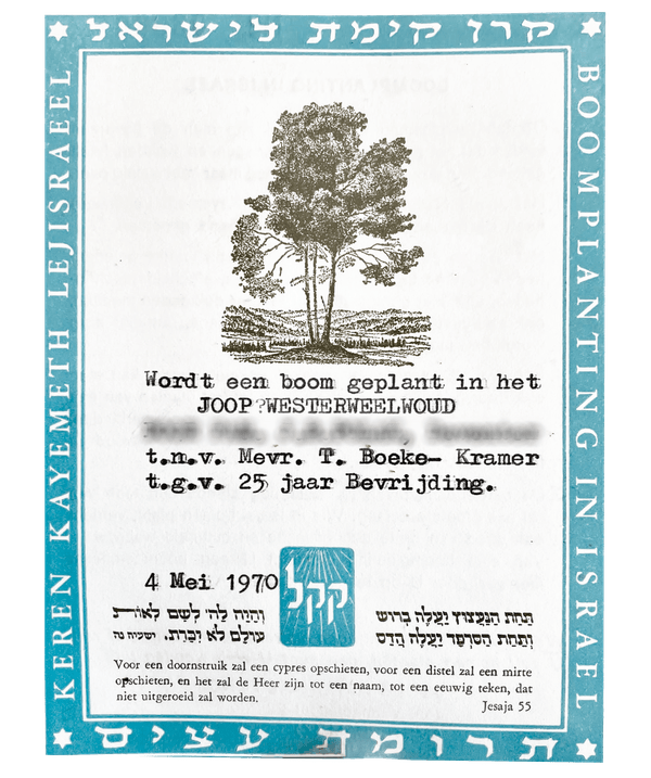 The JNF tree certificate dedicated to T. Boeke-Kramer