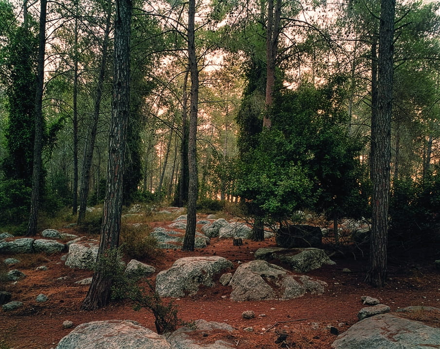 In 2005, Adam Broomberg and Oliver Chanarin visited forests that Israel has planted since its founding in 1948 with support from the Jewish National Fund. During the day, they are popular spots for family picnics – in the early morning, just after sunrise, the forests look serene and untouched. But all the places that Broomberg and Chanarin photographed once stood Palestinian villages. After the original inhabitants were forcibly evicted and their houses destroyed, the remains were gradually and deliberately covered with trees. When you look at the photos, you are not only looking at innocent pine trees, but also at a hidden history of destruction.