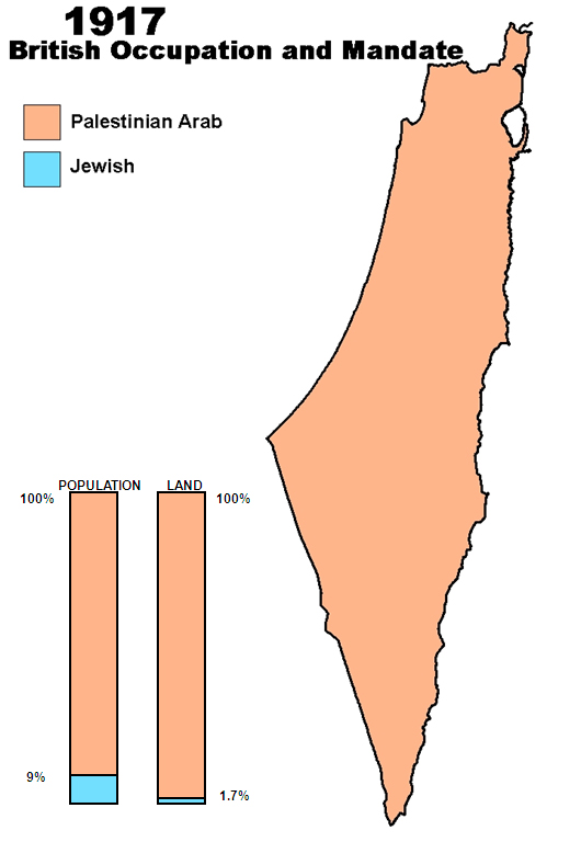 The Jews were only 9% of the population. Their land ownership was only 1.7% of Palestine.