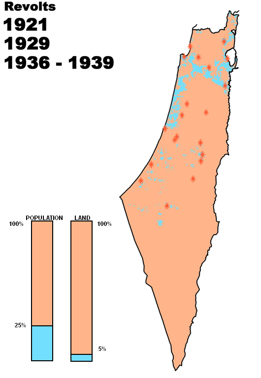 The Palestinians revolted in 1921, 1929, but the biggest revolt was in 1936-1939. The last was triggered off by a massive Jewish immigration from Europe in the mid 1930’s. By 1939, Jewish immigrants increased 8 times from 1917, the year of British occupation of Palestine. In 1939 they constituted 30% of the total population (445,000 out of a total of 1,501,000).