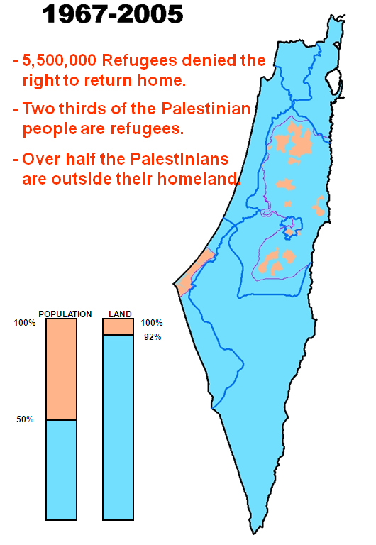 Israel’s appetite for colonial expansion was not satisfied. In 1967 and after, Israel occupied 100% of all Palestine, parts of Jordan, Syria, Lebanon and Egypt. Palestinians were besieged in isolated cantons, treated like concentration camps.