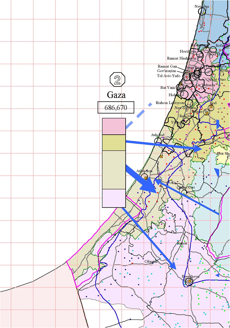 The southern district is even easier. The number of rural Jews in the southern district is less than a single refugee camp in Gaza. The area of this district is 40 times the size of Gaza Strip. True half of it is desert but with the billions of dollars Israel receive, it could revive the fertile part.