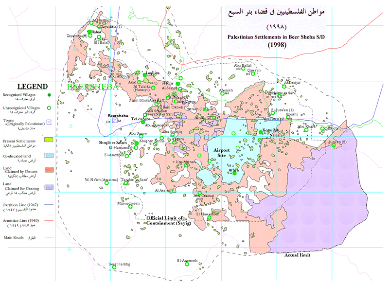 In the southern district of Beer Sheba, the situation is much worse. Half of the population of 130,000 in Beer Sheba live in 45 unrecognized villages. [Fig-8] Their property rights are completely denied. They are plagued by a fascist military force called Green Patrol. This Patrol evicts people from their land, shoots flocks and dogs, pulls down houses, ploughs over crops, uproots fruit and olive trees, sprays crops with toxic material and demolishes dams.