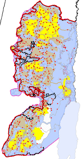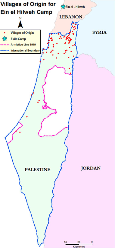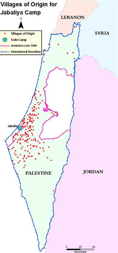 We know where the refugees in any camp come from originally. This is Jabaliya camp in Gaza Strip and the red dots are the villages where they come from. This is Dehaisha camp, just south of Jerusalem. This is Ein El Hilweh camp in Lebanon.