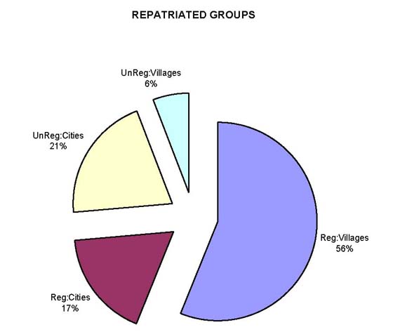The previously outlined 7 phases are meant to describe the categories of returnees according to whether they are registered or unregistered, whether city or village refugees, and according to their place of refuge at present.