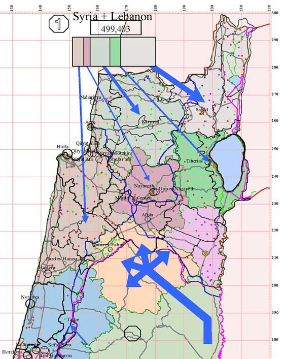 Fig-15: Return of Registered Village Refugees from Syria and Lebanon: Their return to Galilee poses no problem whatsoever. They will be united with their relatives left behind (Present Israeli towns with population over 20,000 are shown in circles proportional to size).