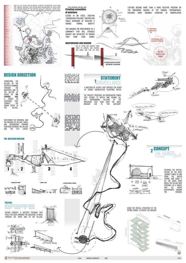 The geopolitical power of altitude played a huge role in making the occupation what it is: a constant watching, surveilling entity that uses altitude as a weapon for manipulation and corruption. And as we stand in the land of hilltops, and right between the highest summit and the highest city in Palestine, this project takes the concept of altitude and its geopolitical power in war and occupation and retells the story of this watched village using an observation tower. A building that watches you back, this time a reminder of injustice, instead of a manipulator of truth.