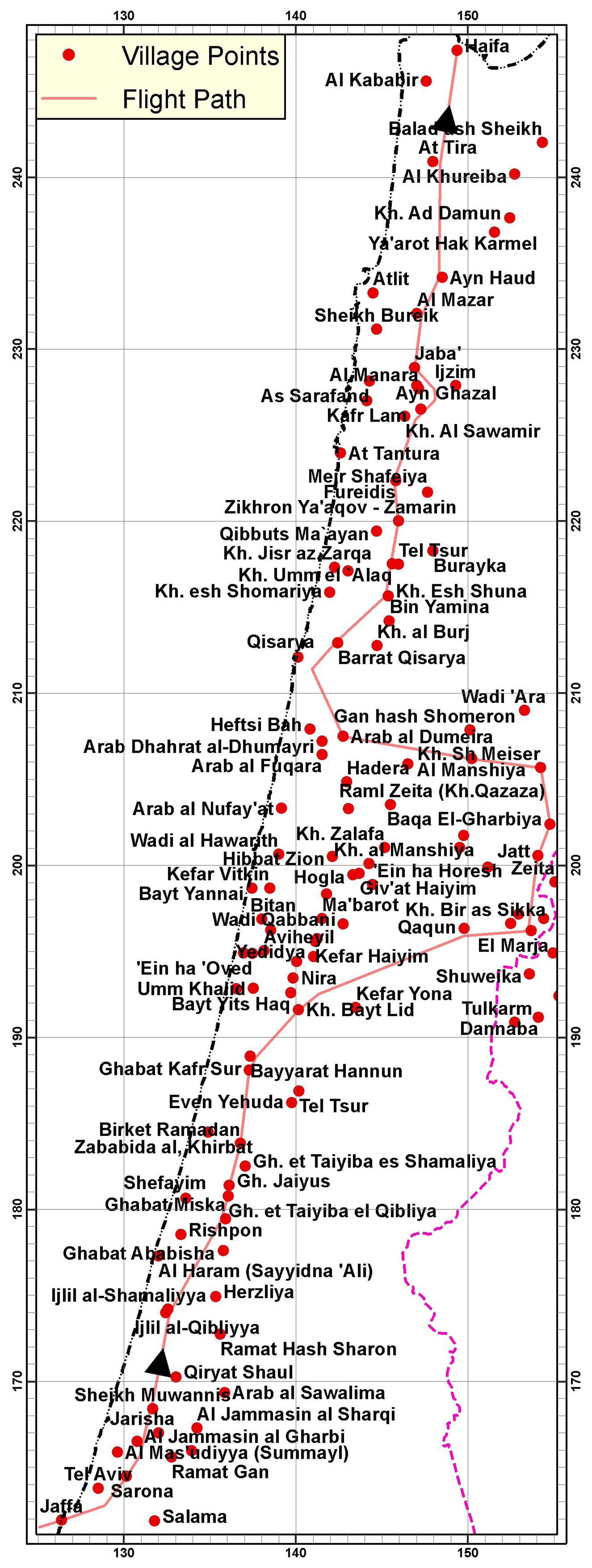 From: Jaffa Passing by: Sarona, Jarisha, Ijlil esh Shamaliyya, Gh. Jaiyus, Kh. Bayt Lid, Qaqun, Zeita, Kh.Sh. Meiser, Al Manshiya, Qisarya, Fureidis, Ijzim, Ayn Haud, At Tira To: Haifa Duration: 4 min 19 sec